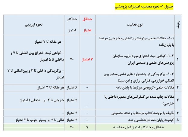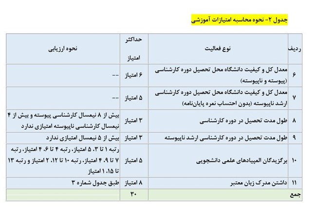 - کسب حداقل امتیاز 60 از فعالیت های آموزشی، پژوهشی و مصاحبه (براساس جداول 1-2-3)