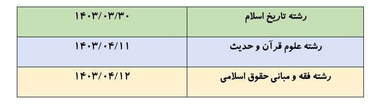 داوطلبان میتوانند از تاریخ ۱۴۰۳/۰۳/۱۲ لغایت ۱۴۰۳/۰۳/۲۲ نسبت به ارسال مدارک درخواستی به آدرس ایمیل Dr1403@mazaheb.ac.ir اقدام نمایند. به مدارکی که بعد از مصاحبه ارائه شود، ترتیب اثر داده نخواهد شد. (لطفا شماره تلفن همراه خود را در ایمیل ارسالی درج نمائید.)