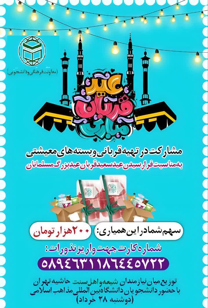 دانشجویان، کارکنان و استادان دانشگاه بین المللی مذاهب اسلامی، بهمناسبت فرارسیدن عید سعید قربان در یک اقدام جالب و ابتکاری به کمک نیازمندان شیعه و اهل سنت پایتخت و شهرهای سنندج، زاهدان، بندرعباس و گنبدکاووس میروند.