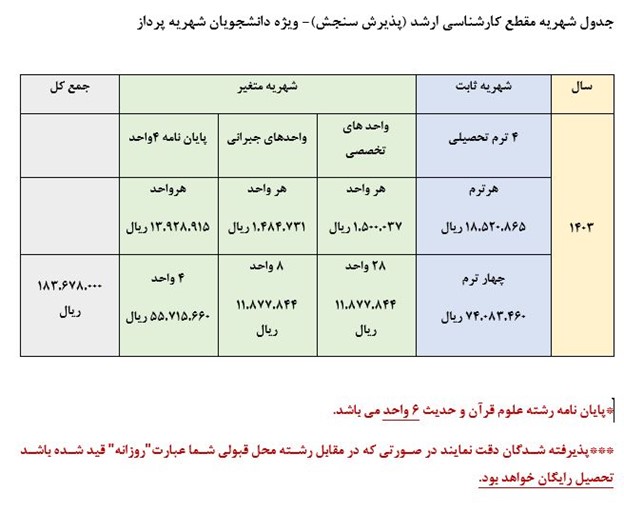 ***دانشگاه در مقطع کارشناسی ارشد فاقد خوابگاه می باشد.