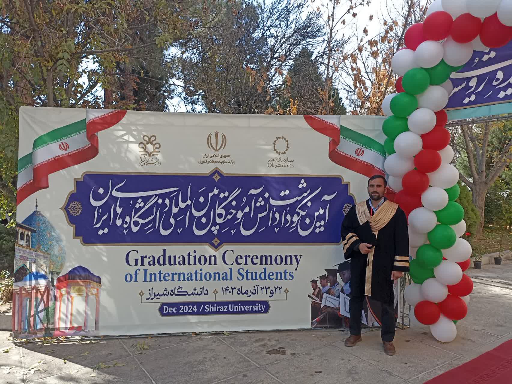 دانشجوی بینالملل دانشگاه بینالمللی مذاهب اسلامی آقای مسیح الله احمدی فارغالتحصیل مقطع کارشناسی ارشد رشته فقه مقارن و حقوق عمومی اسلامی به همراه آقای کوروش صالحی کارشناس مسئول دانشجویان بینالملل دانشگاه، در «آیین نکوداشت دانشجویان بینالملل دانشگاههای ایران» که در تاریخ ۲۲ و۲۳ آذر ماه در دانشگاه شیراز برگزار گردید، شرکت کردند.