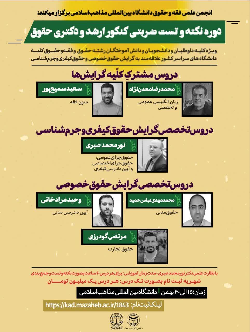 انجمن علمی فقه و حقوق دانشگاه بین‌المللی مذاهب‌اسلامی برگزار میکند: