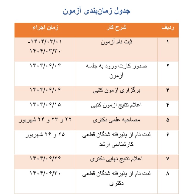 این آزمون در تاریخ ۱۴۰۴/۰۶/۰۶ در تهران برگزار خواهد شد.