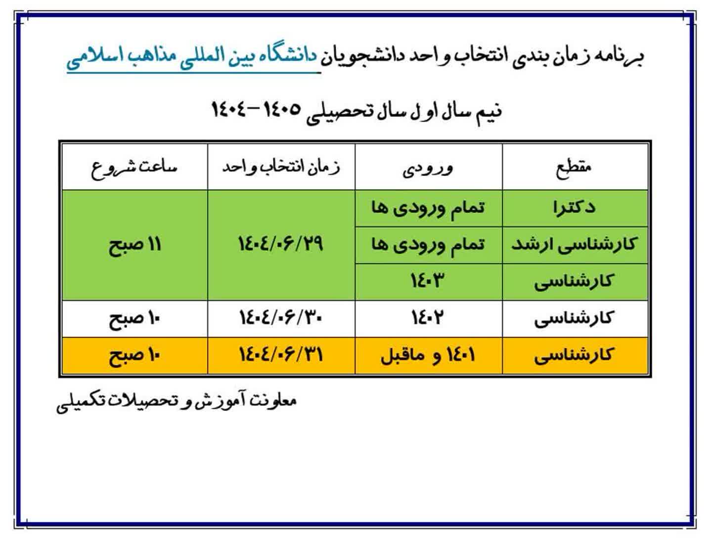برنامه زمان بندی انتخاب واحد نیمسال اول سال تحصیلی ۱۴۰۴-۱۴۰۵ ۲۹ شهریور ۱۴۰۴ | ۱۴:۲۴ کد : ۵۹۴ اخبار و رویدادها تازه ترین اخبار تهران و شعب ارسال به دیگران نام شما ایمیل شما ایمیل دریافتکننده ارسال انصراف تعداد بازدید:۷۵۰